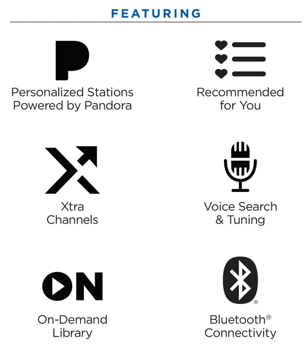 • Get SiriusXM’s 100+ Xtra Music Channels with content from different genres, eras, moods, occasions, events, and play-by-play sports that makes it easier to find your favorite teams